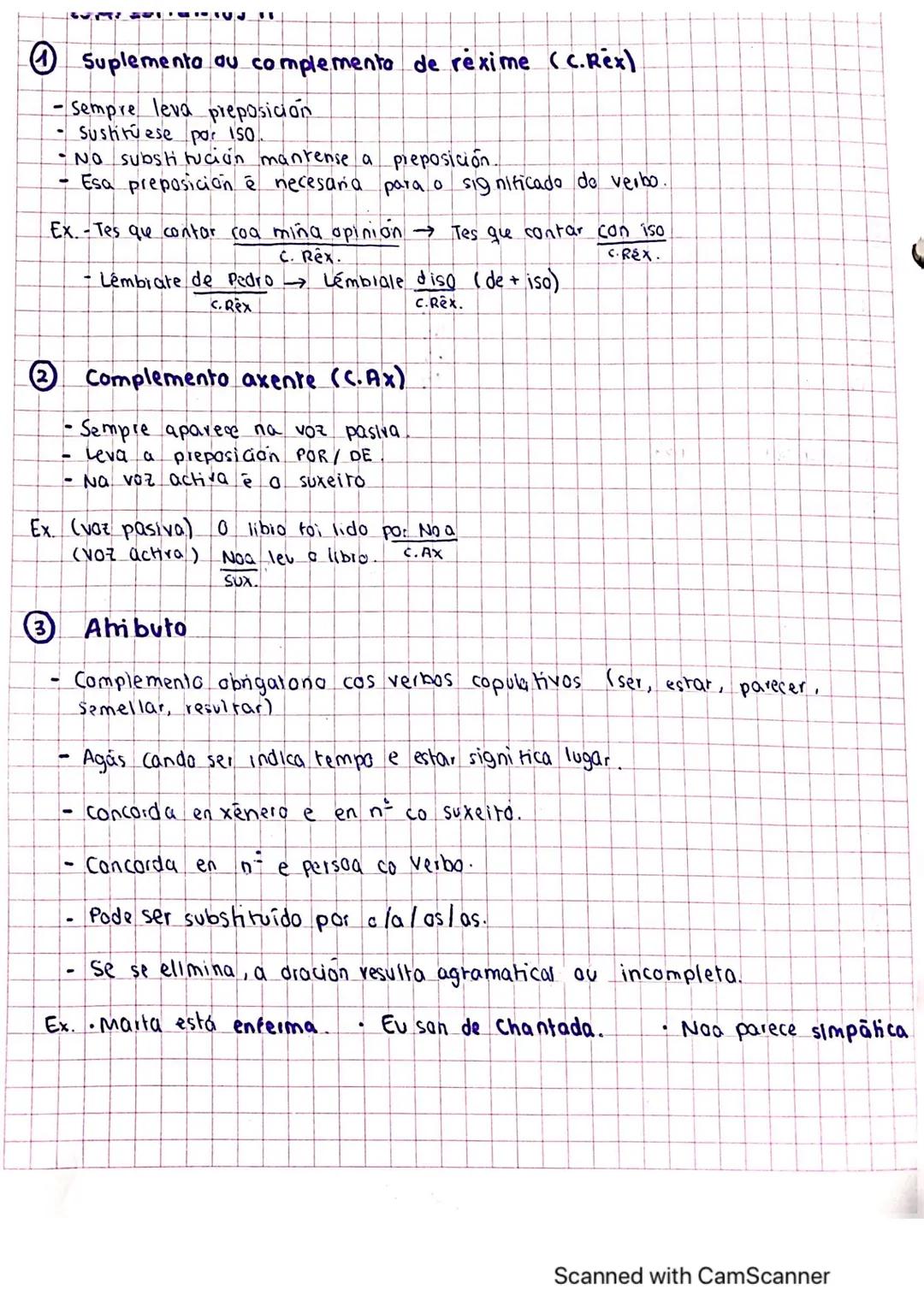 Esta seção detalha os diversos tipos de complementos encontrados nas orações em galego, fundamentais para a prática de exercícios de sintaxe em galego.
