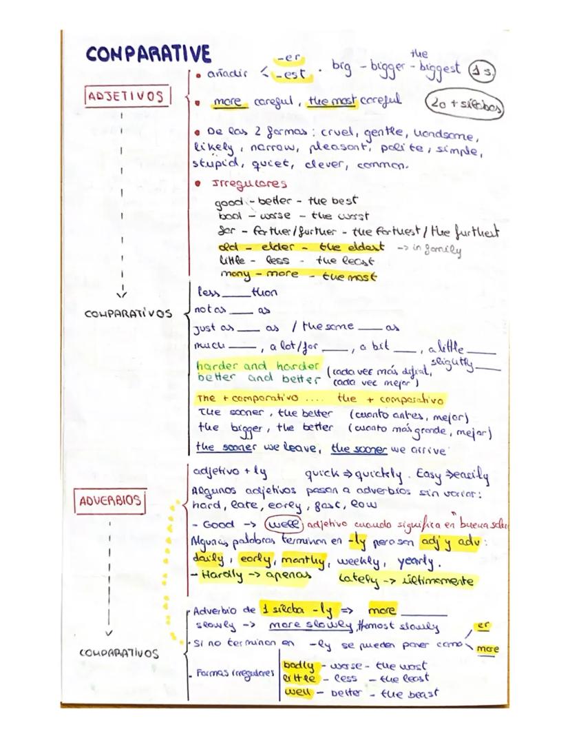 Adverbs follow similar patterns, with some forming comparatives and superlatives by adding "-er" and "-est," while others use "more" and "the most."