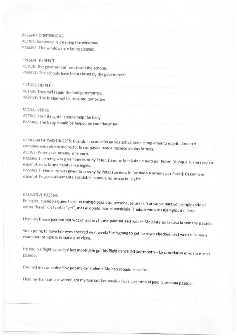 PDF con toda la gramática en la asignatura de inglés en primero de bachillerato, explicado con estructura, colores y ejemplos. Tiempos verbales, condicionales, reported speech, voz pasiva, etc.