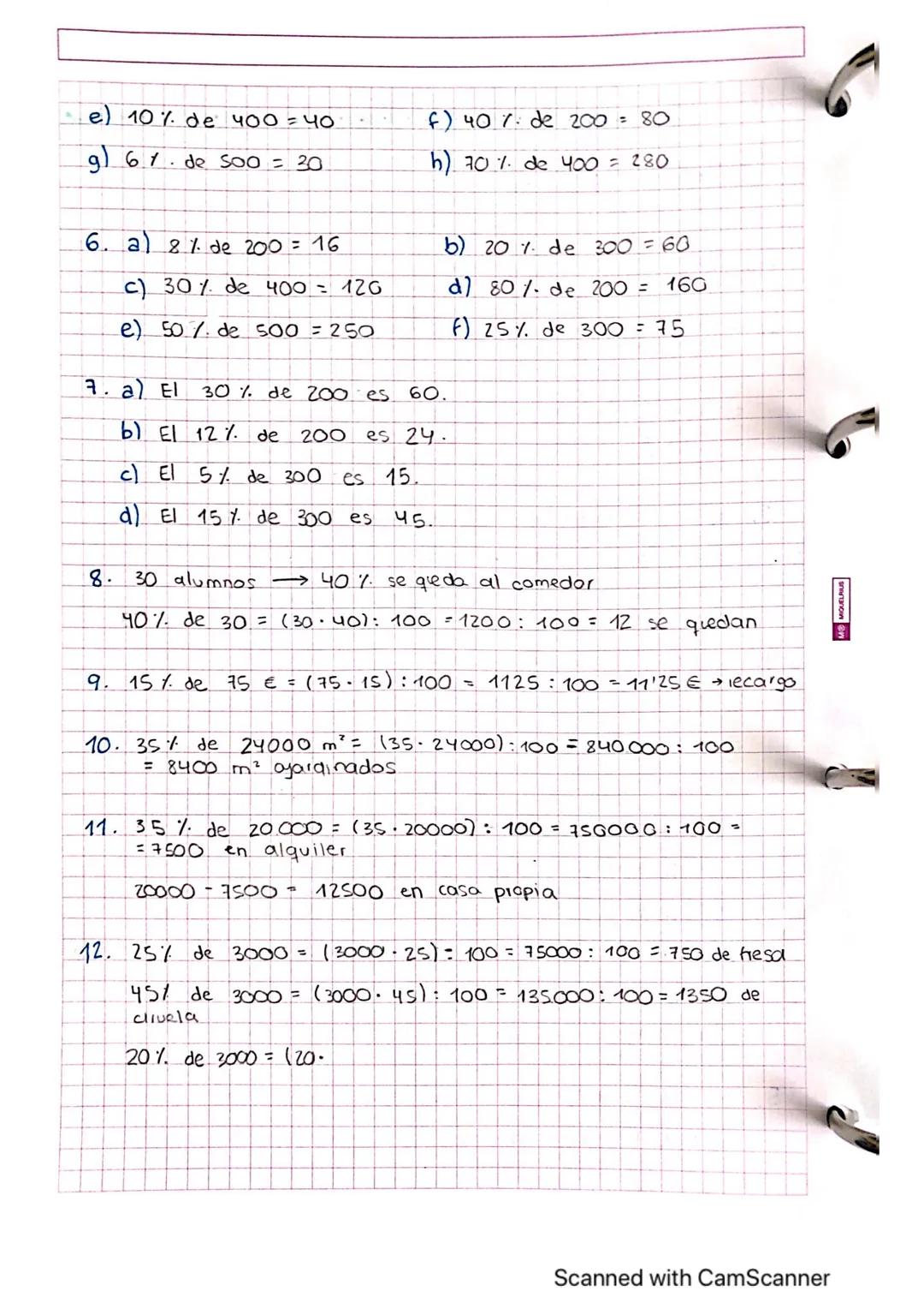 Apuntes, problemas y ejercicios resueltos de los porcentajes y de las reglas de tres simples.